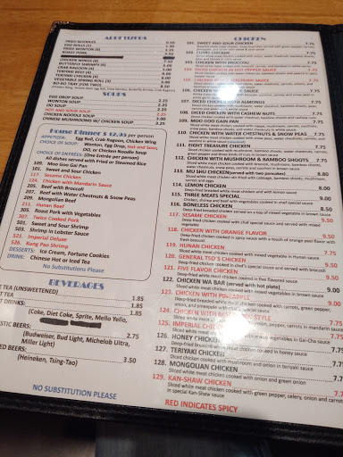 Ok, with all the reviews posted, we were unsure if we should try this place. In this area most Chinese restaurants are clones of each other. Same menus with all the expected selections are the typical scenario. If ambiance is all that matters to you, this place aint it. But, it is clean and the food was worth another visit. We would rate 4 stars at this time - We have lived in the area and eaten at many Chinese restaurants over a decade, we are rating this from that point of view. The Won-ton soup tasted good, and the won-tons were cooked correctly (not overcooked) The Egg Rolls were filled with pork and flavor and had a crispy and flaky wrap. The Crab Rangoons were crunchy and creamy, and had great flavor. The Cashew chicken came in a brown sauce with a side of rice and the flavor was better than we expected and we enjoyed it. We also got the Eight Treasure Chicken which had peanuts, cashews, bamboo shoots, mushrooms, chicken, water chestnuts, thin sliced carrots and green peppers. It was also in a mild brown sauce that was very tasty and a bit addictive. The service was friendly as was the atmosphere. They have Tsing Tao if you like Chinese beer. They also, oddly enough, have Red Stripe Jamaican beer, which of course is IRIE ;) We will return since the lunch menu has 63 combination platters and the dinner menu has at least 250 plate selections and at least 45 combination platters to choose from. I would recommend eating here since it was one of the best local places (from Oak Ridge to South Knoxville) that we have found so far. It is not PFCHANGS but $7.75 for a dinner combination plate is a heck of a bargain for good food and a pleasant experience.
