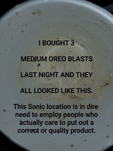 Worst Sonic ever! I love Sonics however I never been to one like this. The servers are incorrectly trained on how to take orders. By adding a drink to my order they charged my card first for the first total, then instead of charging me $1.23 extra for the drink they added it to the first total and recharged me for the entire order all over again. ( I warned them that it would happen but they didnt listen. They assured me it wouldnt)The general manager was very rude about the entire situation.