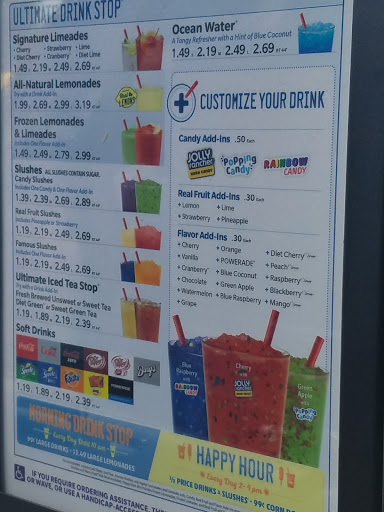 Place was packed as it was happy hour and hot but service was very good, person taking my order was friendly and we didnt have to wait long for our drinks. Slushes were not frozen much, I suspect due to how many they were making the machine couldnt keep up. Overall though a good experience.