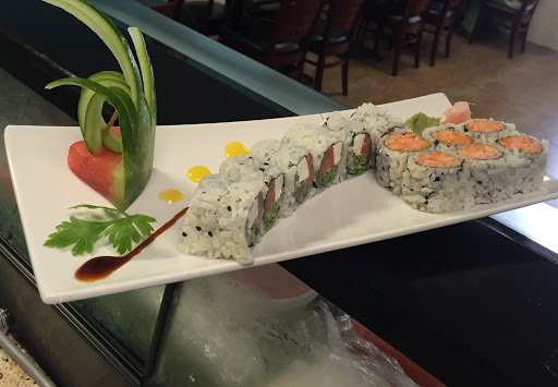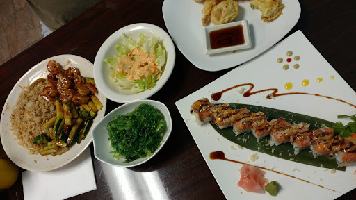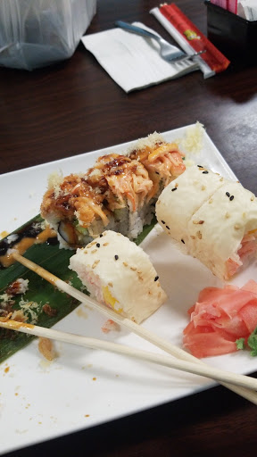This was our first time eating here. The restaurant is located in the corner of the Kroger shopping center. The restaurant is very clean. The staff was pretty efficient and friendly. I ordered the hibachi chicken with extra veggies instead of rice. It was delicious. My husband ordered the dragon roll and the TN roll. The dragon roll was okay. It tasted good, but it barely had any shrimp. The dragon rolls weve had in the past had at least a visible amount of shrimp. The TN roll was really good! We arent big on rolls with cream cheese, but this one surprised us. The touch of spicy shredded crab on top was really great! The price was pretty reasonable, too!