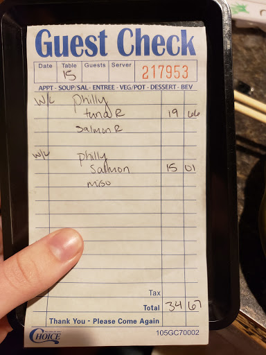 This is the worst sushi place Ive ever been to. I ordered the salmon nigiri and it was so bad that I could not eat the rest. Salmon is supposed to be bright pink, plump, juicy. This piece was flat, pale pink, and didnt look like fish. I eat sushi all the time, and you know its bad when Krogers sushi beats this place by a ton.