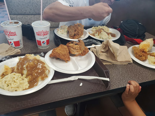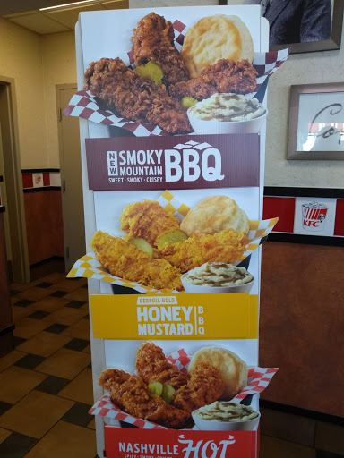This is the worst KFC I have ever been to in my life. The servers look like they hate life and the restaurant is very dirty. On top of that it would be nice to have some sort of policy that kept customers from hovering all over the buffet talking about whatever and breathing and spitting all over the food someone else is going to eat..... sadly as Im writing this my 9 year old daughter was waiting for a biscuit ( waiting for 15 minutes at least )and the man in front of her put 7 on his plate ( AS IN ALL OF THEM) I understand this is a small town full of laid back older people but customer service is customer service no matter where you are. I have my own business myself and I would never ever let it get this out of hand. Im very disappointed in this particular KFC