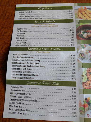 Good food, enjoy watching the chef on the Hibachi grill & we love the white sauce....you need to try it!