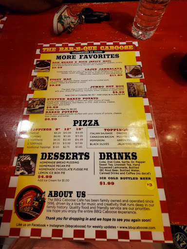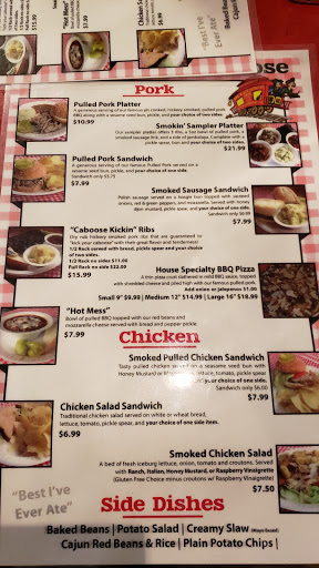 My family and I came in and we loved it!! We all got something different like the smoked sausage, pork sandwich, ribs, and bbq pizza and it was all terrific!! I would advise everyone to come to the bbq caboose to eat. Even though the food was fantastic, the waitresses and host were also wonderful. When we came in I asked all the girls that helped us their names because they were all so fantastic! If you come in you need to ask for Katie, Ivy, or Casside. They are all wonderful, quick and a pleasure to talk to, you cant go wrong with any of them!! And on top of that when I went to pay before I left I got to talk to another wonderful lady named Lori who I think is the manager. All of the girls here are great and the food was SOOOO delicious that we will definitely be coming back very soon!!!!