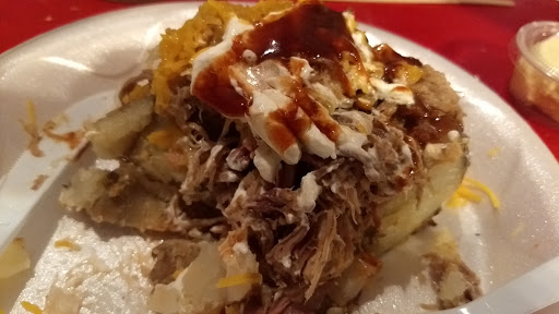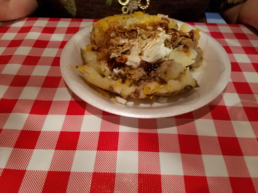 This place is a typical tourist trap. The food is horrible. They use bacon bits from a bottle on the potato. The BBQ was horrible. The restroom was horrible. Nasty restroom and a hook on the door the left the door partially ajar. The only reason I stayed us because I did not want to appear rude. I would never go there again.