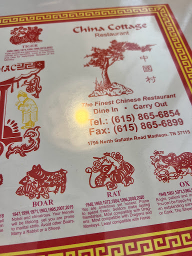Visiting China Cottage is just a wonderful experience. The place is clean, it smells nice, the music is lovely, there are fresh flowers on every table, the staff is incredibly gracious, and the food is delicious. What more could you ask for? More locations, that is what. I live south of Murfreesboro now, so I do not get up to Madison very often. I truly miss China Cottage. We used to go almost every week. The staff started recognizing us and giving us panda calendars and other fun stuff when we visited. This restaraunt is really special. I havent even talked about the food, which is excellent. The Crab Rangoon is awesome, the soups are all delicious, and their Moo Shu Chicken is the best. We have never had anything bad (or even mediocre) at China Cottage. Go there and enjoy! It is worth the drive.