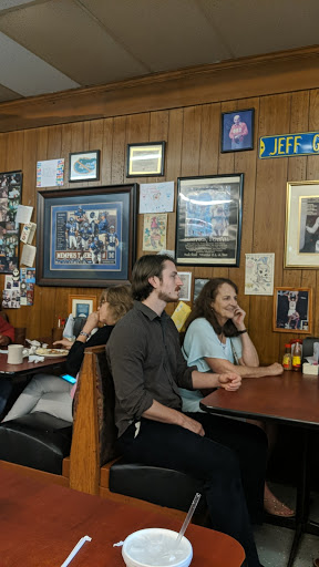 Linoleum counters and cheap wood paneled walls. Mediocre jelly on the $4 eggs and toast. Nice waitress, but feels gritty. Authentic working class Memphis vibe, very Southern feeling. Decorated with a variety of accumulated objects (shirts, elvis stuff, old posters from local elections). I like downscale, but needs a fresher look. Probably a local institution, but I couldnt get into it.