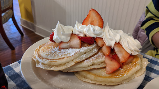 My husband and I recently dined at this quaint and cozy little cafe. We were so pleased with so many aspects of our entire dining experience. Practically located at the back door of our hotel, this place had great service, EXCELLENT food, and the atmosphere was very welcoming. The portions are out of this world!! We opted to share the mexican roll ups which came with a side of black beans. The other side choices were grits, hashbrowns, or three buttermilk pancakes. After observing other diners dishes, there was NO WAY we could pass on the pancakes. We were SO glad we didnt. They were golden, fluffy, and came with warm maple syrup and creamy butter for topping. We ordered a side of hashbrowns that were crispy and delicious as well. The dishes were very reasonably priced. We are 100% major fans of this cafe, and will definitely go back. The view of the square outside of the window was nice, and the home-like setting made us feel very comfortable. You must try this gem!!!