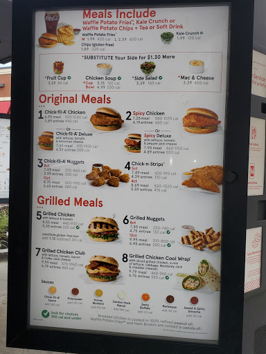 Always fresh and tasty food. Is always packed in the morning and right after school. Drive thru and inside lines more very quickly. Very friendly staff. Children play area seem really small but the kids dont seem to mind. Only thing is that they NEVER have any Chick-fil-A mints. :(