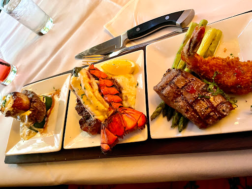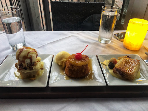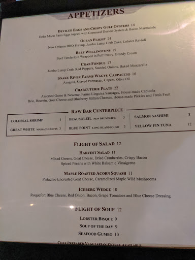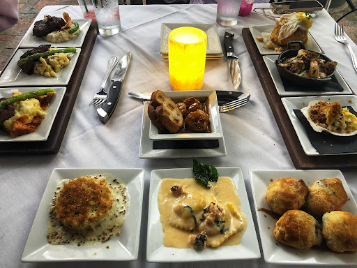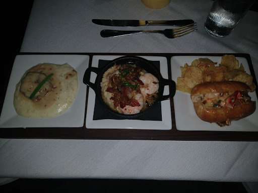 Great experience, staff very friendly, attentive, and abundant. The concept is good, and we enjoyed the variety of tastes. Food was well prepared and very tasty! Dessert was fantastic also. We were unfamiliar with the concept, so for those who dont know how it works. .. you can order prepared trio plates (flights) or mix and match. (Wines, soups, salads, entrees, et cetera.) They use three as a flight. I ordered a shrimp and Grits, bison ribeye, and veal scallopini. All of the aforementioned were delicious. I also tried the spare ribs, duck, beef wellington, halibut, lamb, and elk from the familys plates, all of them were par excellent. My nephew thought some of the meats were too sweet, so if you are a no dessert person like him, you may want to ask for the best choice for less sweet meat. We were a family of four and our meal with tip was $200. We had water to drink, and ordered entrees and a flight of dessert. So if you order alcohol, expect all to rise in cost accordingly. Overall, a great dining experience. We will do it again in the future on another special occasion.