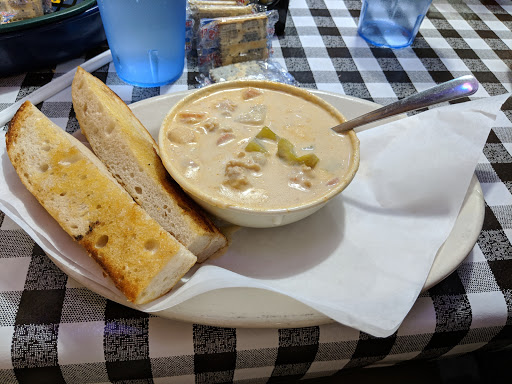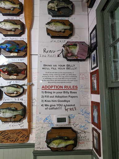 Food is okay but not alot of choices. Three of our group wanted fish so we were fine, but my daughters only other choice were chicken fingers which she said was just okay. The fish was pretty good, but it just wasnt my favorite. The decor was interesting and gave us something to look at and talk about while waiting for our food. The staff was also super nice. They ran out of coffee and one person there expected me to make the coffee myself. When I couldnt find the filters, another guy came around the counter and started it for me. Even though I do know how to make coffee, I would prefer not to have to when Im eating out. Afterall, I can grill a burger too, but wouldnt expect to at a restaurant either.