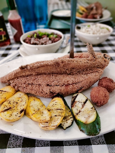This place was a hidden jackpot! We went July 31, 16. I have to say dont be put off by the wall of fishes! The menu looks bland and boring but it doesnt do the food justice. I thought the food was going to be good, but I didnt know it was going to be that flavorful and delicious. We got grilled salmon and snapper with the veggies. I promise you this place is worth the parking if you cant find any for free! We also tried oysters for the 1st time, and I admit they look disgusting and the texture scared me but with a cracker and some cocktail and hot sauce those were good too. If you are like us dont get more than 6 for 2 people.
