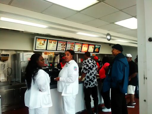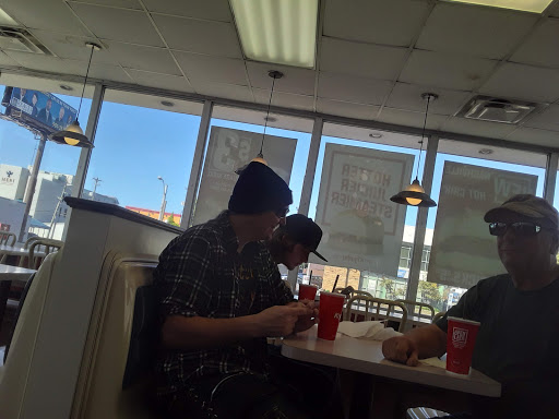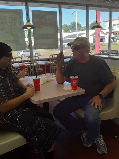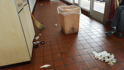 Slow service. Angry workers. Tons of bugs on the window sill. Not one clean table. Broken chairs. Gave us our order wrong (no bacon on a bacon burger). One good thing is they mopped while we were there but its very hard to walk on a freshly wet floor. Bathrooms were disgusting.