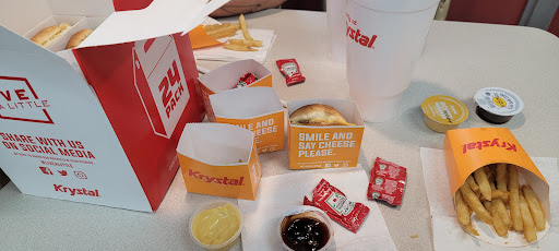 Theyre open 24 hours, and the service is OK during the day but a great deal of the time after about 11pm there is a line of cars all the way around the building because the drive through service is somewhat lethargic shall we say. As for the food, well, its Krystal. Good and Proper Get-ya-fat southern fare. Aint a thing wrong with it.