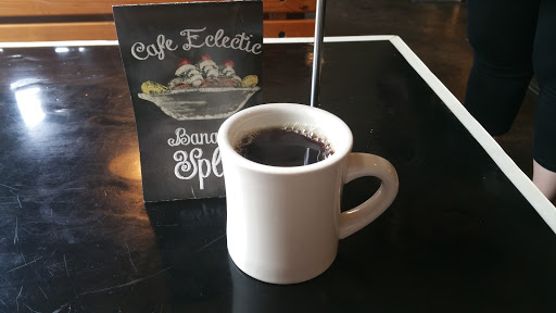 Good coffee and tea. They dont have a full kitchen so food not as good as main cafe eclectic location. Furniture and chairs somewhat too well worn for my taste but others could find cozy. Find that sometimes feels smoky from food as if ventilation is not adequate. Good for grab and go instead of eating in.