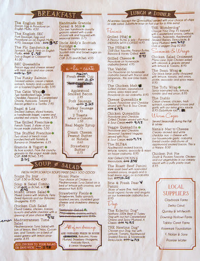 Cute, cozy.coffee.shop ..Great patio to visit in spring and summer.. Shaded and quiet..Homemade soups and sandwiches!