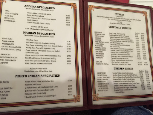 This restaurant has very narrow selection of decent food. The rest is simply bland and doesnt resemble authentic Indian Food. For example, the mysore masala dosa, is anything but that. The sambhar is simply reflavored daal, and the dosa stuffing of potatoes doesnt have much flavor. Have tried their Buffet also and came out disappointed. Customer service is another thing where this restaurant loses big points. The cashier actually argued out loud with me in front of other customers over something I pointed out to him.