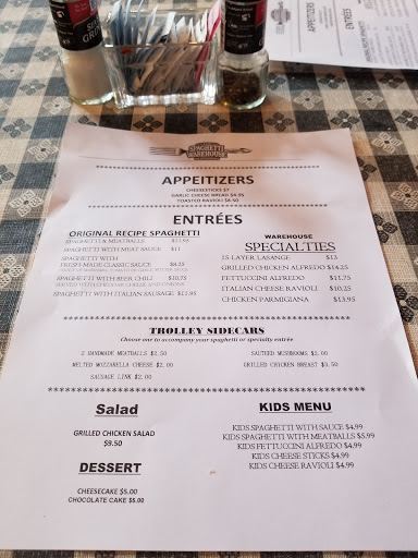 This place is strange. There is really no other way to put it. I considered the price point, the food quality, and the service in my two-star rating. I have been considering going to Spaghetti Warehouse for a while and did so last Friday night. I hope this reasonable comment will provide you with some actual info on what to expect at this place as all the other comments are not very helpful. My fiancee and I decided to eat here last Friday night at about 6 pm. There was no wait. Upon entering the building, we were greeted pretty swiftly. The first thing I noticed was all the strange decorations in the place. There is a trolley in the middle of the restaurant and one table is covered by this weird metal structure that almost looks like a bed canopy that you would hang some drapes/curtains from. We were sat at a table by the trolley. All the tables are covered with nylon table cloths that do not seem very clean. The restaurant in general does not feel very clean and I doubt it is. Our waitress was nice. We got water and some beer and wine. The waitress asked if we wanted an appetizer and we declined. She came back after we were done reviewing the menu with our drinks and some bread. The bread was super hard on the outside and came with this garlic butter. Somehow it was actually pretty soft once you sawed through the apparently reinforced crust with a steak knife (crumbs everywhere - again probably not a clean place). I ordered the lasagna and my fiancee ordered the spaghetti. Mine came with chili and hers came with a salad. Upon ordering, the waitress asked if we wanted desert which seemed strange since we hadnt even eaten dinner yet. The waitress asked if we wanted a mozzarella topper on our food. My fiancee said yes. This later turned out to be an additional $1.75 charge for some burnt cheese on your food. The waitress brought our salad/chili quickly. The chili is pretty good. The caesar dressing came on the side of the caesar salad which also seemed strange but no big deal. Shortly thereafter the waitress brought our food out on a tray. We were still eating our chili and salad. She asked if we wanted the food now or if she should bring it back later. This was very strange to me because she was essentially asking "Do you want me to go put your food under a heat lamp?" We said no we will take the food. It didnt look too bad when she brought it out. We started eating the food and it was alright. Basically tastes like some above average cafeteria lasagna and spaghetti. The meatballs and italian sausage in the spaghetti were not good. Definitely not worth what it costs. While we were eating, we noticed that we started itching pretty bad. I then noticed it felt like stuff was crawling on my feet. We at first thought these were mosquitos. But i think they have sand fleas in there. My fiancee has over ten bites on her feet. So we were just hurrying trying to eat and get out of there. By the end of the meal, I was definitely feeling like I made the wrong decision on dinner that night. At Spaghetti Warehouse we spent $50 on spaghetti, lasagna, a beer, and a glass of wine with tip included. It simply should not cost that much based on the poor food quality. Summary: The food is way overpriced. Despite the occurrence of some bad reviews, I was sure that the food would be decent because of the price point. This is not the case. It should cost at least 30-40% cheaper than it does based on the quality. It is just not good really. That bread might be very hard when you get it. Our service was good and the waitress was nice. However, the table next to us sat there for a while just staring off into the distance waiting for their check. Apparently the manager really pushes upcharges because they will try to sneak them in on you and jack that check up. We payed almost two bucks for some burnt cheese "topper." You may get bitten by sand fleas in there and you will feel a bit dirty. Just go to the new Tuscany restaurant at Gayoso and Front. The owner in there is real nice, the food tastes awesome, and it is cheap.