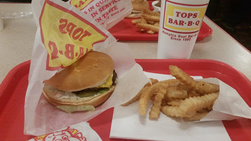 There is only ONE /#1, TOPS Bar-B-Q so far that i,ve discovered. That is on Poplar Ave near Whole Foods. This store is a beat or two behind that one. as unfortunately my fries were not fresh while the burger-sandwhich was tolerable. I asked for xtra- mustard (double- spread) along with all the toppings. I received a small dap of mustard with barely fresh toppings. For 1st class burger-tasty!...TOPS on Poplar near Mendenhall (or Whole Foods) always makes me perfect fresh sandwhuch and fries according to my slightest whims. It IS worth the long lines Every Time!! This place is fine if your only chioce is Burger King or Mickky-Ds and you do want to taste your meat grilled beyound the assembly line concoctions.