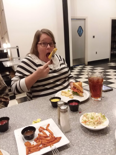Great wings, burgers, fried green tomatoes, ice cream and chicken tenders. The atmosphere is laid back and the 50s doowop music is a definite plus especially being from New York. Reminded me of when I was young. Staff was get and always coming to see how everything was. BTW, they have great prices an tap veer and wines! A+++++ will definitely take the 40 min ride for dinner again.