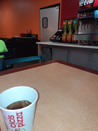 Horrible Horrible Restaurant! We stood in line for about 10 mins until someone decided to come and get us drink and be seated. While we were standing there were tons of dirty tables that needed to be clean. So the girl was standing there looking us in our eyes and then went to the kitchen and told someone the lines were long in the front, so he then walked to look, and turned around and then came around the corner and apologized and said that he thought someone was talking our order. When in reality, he knew no one was taking it. Also, the girl was standing there screaming loud things and it was annoying, Then when the line went down her friends walked up and she quickly took their order and it looked as though one of them worked there because they were walking all behind the counter. So unprofessional. So, they were cooking the pizza and putting under the counter until the older pizza was gone. So by the time they put "Fresh" Pizza out it was COLD! No one had any name tags so I couldnt identify anyone. This was for vacation and we no longer have an CICIS Pizza in my home town. So we thought itll be nice to stop and eat at one. But this was HORRIBLE! NEVER AGAIN WILL WE EAT HERE!