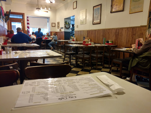 Historic diner on the square. City Cafe is timeless in that people will always need a place to go get food that tastes like your momma made it for a reasonable price. Bottomless coffee from actual coffee cups is a rarity that makes this our favorite place for a good meal.