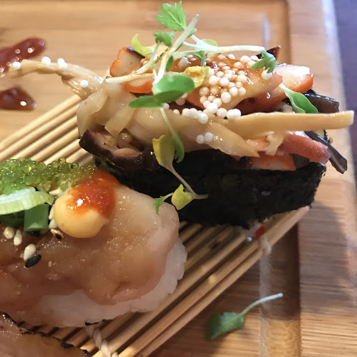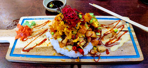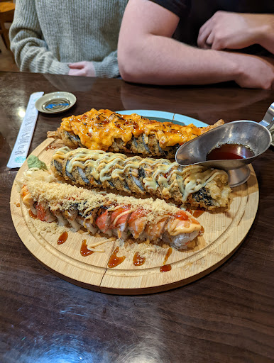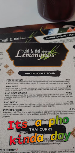 Decent sushi, interesting take on thai-japanese fusion flavors. I havent tried their Thai dishes yet. One of the few places that offers bubble tea that isnt frozen (I dont get the frozen thing). Recommend the Bangkok Roll for an appetizer - one of my friends declare it to be the perfect hangover dish. Lemongrasss selling point is that they offer decent-priced creative sushi, but in terms of quality, its neither better or worse than their competition. Theyre the perfect budget sushi place, as their rolls are pretty big for their price, and just one will fill you up. They recently expanded, which helped enormously with their previously crowded interior - their tables were too small to deal with the huge sushi plates, and accidents happened sometimes. Overall, a decent place for decent sushi.