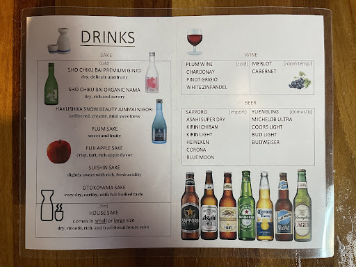 Great food here. Service can be slow sometimes. There is a small sushi bar but lots of tables. Sushi is good. We have tried the Spicy Tuna Roll, the Murfreesboro Roll and the Rainbow Roll. We have also ordered the Squid Salad and the Gyoza. Their rice and orange chicken or sweet and sour chicken is delicious as well.