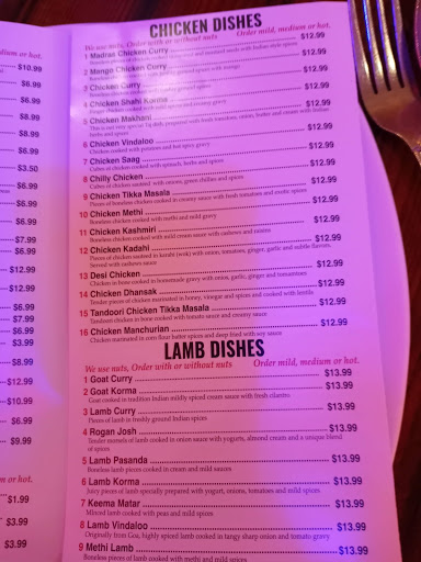 I just tried the buffet and it was gross. Not sure about the food in the menu. Its below the average Indian cuisine, yet pricey. I have been to many classy Indian cuisines across the country that serve better food for fair price. I think the reason why this restaurant pricey and below the average is because its the only indian restaurant in town. Hopefully, more Indian restaurants, which surpass the only one in town, come in town soon.