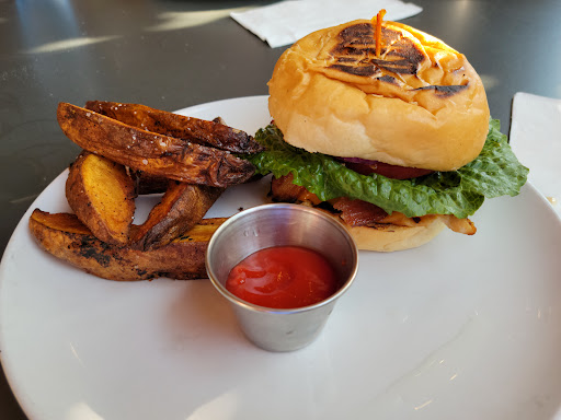 This place looks inviting, and has a great vibe going on, but its super loud and super slow. There now that thats out of the way, we came with a group of 4 at lunchtime on a weekend, and pretty much swiped a table as another party was getting up. It was crowded inside and out on the large patio. They have a huge beer selection, in fact I think that menu was bigger than the food menu! The food menu posed a lot of different (at least to me) combinations and types of sandwiches. I couldnt find many ordinary things on there. I was happy I went outside my comfort zone and tried something different. It was pretty delicious! The mashed potatoes are to die for!! Refills took so,e time and we would go quite a bit without seeing our waitress, but it was semi busy, but lots of staff. And no one seemed overly friendly in the joint. But they did give us stickers when we asked, and they sell growlers and other branded merchandise if thats your thing. It was good but nothing really wowed me, but its a great place to get a beer or 2 if youre in that area!