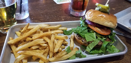 This place is great back home in Missouri, I have come here twice the first time it was packed and could understand the wait but i went in on a not so busy night. Now this placed has low lights and a seat yourself policy, which would be great if they seen there customers. I came in looked over the menu for a drink and food, closed it got on my tablet(stalled), still no one came to take my order. Right when Im getting up to leave a nice lady came over to take my order she was very apologetic but i still order my food to go. Why spend $11 on a single drink when i could go down the street and drink all night for $20. I had just that much time to think it through. Food is always great but they will always be a day late and a dollar short with this policy. Honestly one of my favorite places but this irritated me.