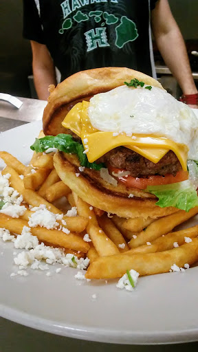 I would give this 5 stars because the food is really good but I got food poisoning about a week or two ago from the lamb burger. Really disappointing because it was good just not cooked all the way and definitely not consistent. I thought they cooked it medium (which is how I prefer my burgers) but half way through I noticed the other half of the burger was well done. Needless to say, Ive been vomiting and having terrible stomach cramps ever since.