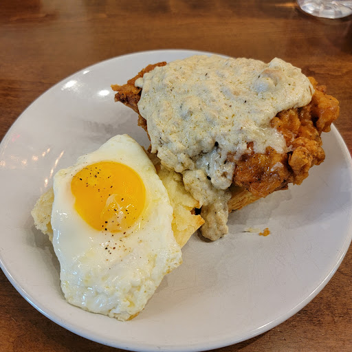 Came here on a Friday morning for brunch. Line was about 20 people ahead but moved fairly quick. They have some water outside for those hot summer Nasvhille days. When you get in you order at the counter and I believe seat yourselves? I was last to order of my friends. We shared some bonuts which were pretty good. I also ordered the East Nasty and it was delicious. They give you a giant piece of chicken and it was very moist. It also took a few minutes to get after I ordered which was really fast and had me surprised that there was a line outside based on how fast I got my food. Im not a huge fan of biscuits as I think theyre kind of dry after a few bites. This was was the same case. It helped that there was sausage gravy on my chicken sandwich. I also tried a piece of sausage that my friend ordered as a side for his omelette. I wasnt a fan of it as it was more of a smoked deli type sausage. Overall I wouldve loved to come back and try some other stuff as everything looked delicious. My friends all seemed to enjoy what they got. The pork chops were already sold out at like 12 o clock... which makes me wonder if its really good.