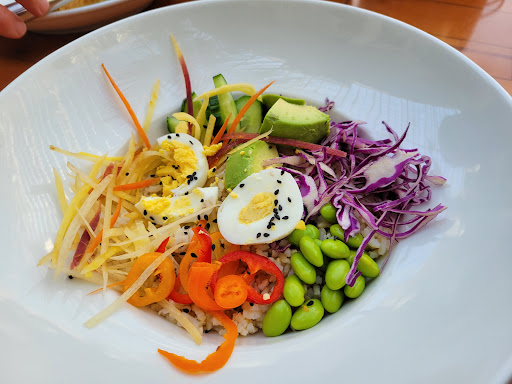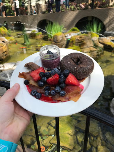While this is a little "pricey" compared to our normal eating habits, it was absolutely delicious, more food than we needed (the burgers we had were gigantic!!! AND perfectly prepared!) Our waitress was wonderful, keeping both our water glasses and my iced tea always filled. And the setting absolutely couldnt be beat: amongst foliage and waterfalls, a pond filled with large koi, and beautiful sunshine all around (though our table was shaded by a tall palm tree). Really good!