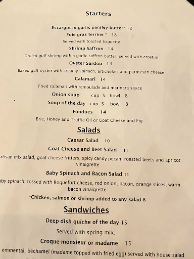 Superb service, as always, from Darrell (hopefully spelled correctly). Always vigilant staff. Lunch special: grilled Grouper, haricots verts, wild rice and generous lemon beurre blanc worth every bit of $17. Most at table got crepes ($10 range) and raved.