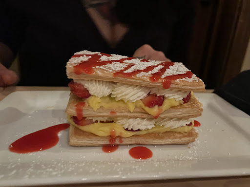 This was my first experience with French cuisine, and I must say I was very impressed! I ordered the blackberry salmon and it was delicious! Everyone at our table seemed to be happy with what they ordered. One of the girls in our group has recently been to France and she said that her boeuf bourguignon dish was very legit. We received great service. I want to go back for dinner, so that I have a more expansive menu and order the spiced lamb chops, and perhaps a dessert.