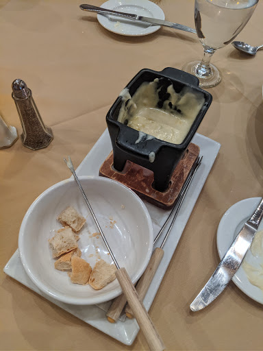 The food was good. My fiancee and I ordered two different duck dishes and were both pleased. However, the service was sub-par. We were delivered water quickly, but were brushed off when we asked what mixed drinks were available. We requested a great fondue appetizer from the busser and it arrived relatively quickly, but then the waiter forgot about us for about 40 minutes--with menus still sitting on our table. There were only 3 other groups seated, so there was no reason for this. Once we ordered, our food came in decent time. The majority of the other patrons were elderly. The general decor felt dated even though its a new restaurant. But at least the music was not so loud that we couldnt just chat and have a good time.