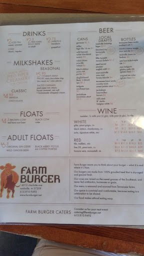 Fantastic place. Our family enjoyed the Dunwoody, GA location. We move to Nashville and the quality of this location is great as well. They have some of the best burgers and fries around. This location also has a kids area with some Legos and toys for young children. The patio was also a nice addition. I highly recommend Farm Burger. The staff was also friendly and attentive.