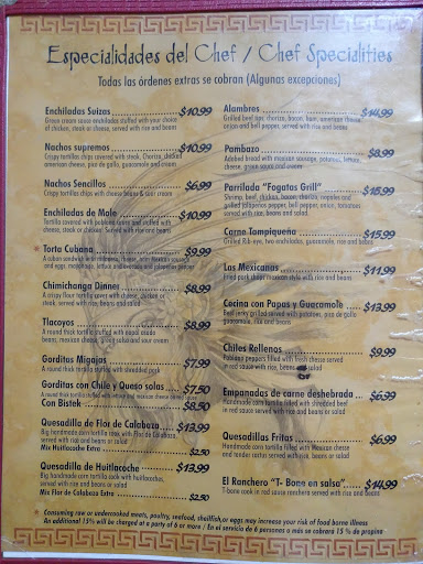 Good stuff- when our previous favorite Mexican restaurant changed hands and quality declined and prices rose we tried several others. We dont eat anything exotic, but the other places were dissapointing even for basic dishes. We finally tried Fogatas (two minutes from our house!!) And found our new go-to favorite Mexican restaurant!! Even a chicken quasadillo is delicious there! As usual for Mexican, prices are inexpensive and arrives fast!