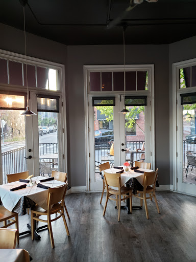 One of our local favorites. Great food, not crazy busy before 10am for brunch/breakfast. Accepts kids. Great drinks. Coffee not good (tastes like office coffee). No lattes. In a quaint area of town. Very peaceful. Big windows. Romantic at night. Beautiful lighting. Great serving staff. Been coming here for years. Eggs Benedict is our go-to brunch food. But everything else typically good when we branch out.