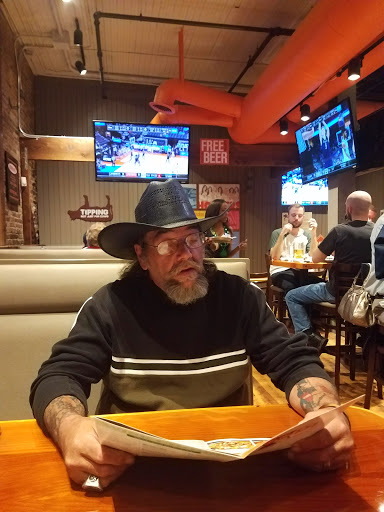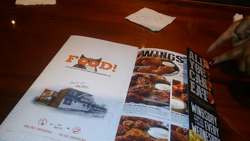 No host, server was too busy putting her order in at the front computer/posi to even look up. Sat myself, food was forgotten on our order. But the manager made up for it by taking care if the bill. Was very frustrating in the beginning. Almost walked out instantly. Didnt really care to hear the excuses from the manager of why there was no host. Ive got plenty of restaurant experience and I know he should have called someone else in or even another manager especially on game day. An at home game day might I add. Wings were still good, the Texas cheese steak was good as well. When the hammers for our son finally came out, they didnt have cheese and they were over cooked :/ the woman bathroom also wasnt very clean. One soap was filled out of the two. Toilet paper out in one of the stalls, later realized it was lying on the floor almost under the stall next to it...looked like someone just didnt want to get the key to put the toilet paper in and thus make the tp super unsanitary by placing it on the ground. Also noticed a group of hooter girls around a table near the kitchen talking, not working so its not like they were too busy to check bathrooms. Also, saw tables sitting dirty for pretty much the whole time we were there. Dont j now if well be back to this location.