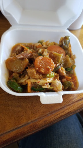 Wow, I was shocked at how bad this was! I knew that it was cafeteria style - so I just went in for some tom yum soup and a spring roll. I also got the $2 potsticker from the cafeteria counter. They charged me $15 and I had difficulty communicating with the staff, and there was no menu, or posted prices beyond the potsticker. I felt ripped off because of the pricing and especially because I ended up throwing the potstickers in the trash. The staff glommed sauce all over the potstickers while they were putting them in a box, and by the time I walked 2 blocks back to my apartment, theyd turned into slimy wet dough. Soup and spring roll were not quite average. I cant recommend, other than to pop into the store section for a bottle of hot sauce or ramen.