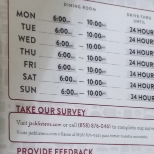 This jack in the box SUPPOSE to be 24/7 but every single time I go (which is always late night) the staff says "Im sorry our system is down" EVERY SINGLE TIME!! And the over night staff is horrible and unfriendly! I always ask how long will the system be down. They usually say 15 minutes... so last night I decided to come back an hour later and guess what..... Yep you guessed it!!! I was told The system will be down for 15 minutes. I laughed and told the gentleman that Ill wait. So I asked if I could place the order. He replied its impossible to order of the system is down. He wouldnt allow me to tell him what I wanted even though I had a big order. So 25 minutes later I attempted to order a chicken biscuit (he said were out of biscuits) I tried to order a chicken sandwich with cheese (he said were out of cheese) I tried to order a sausage croissant meal (he said youll have to take fries) I said fine. Ill have a lemonade or tea to drink. (He said we only have coke tonight) I SAID NEVERMIND!!!