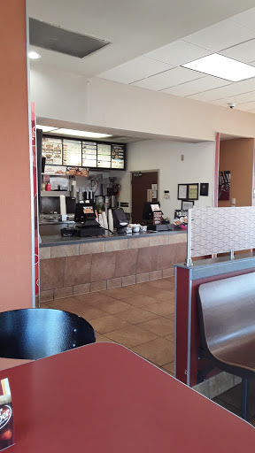 Road tripping and decided to stop here since weve never been to Jack in the Box before. Service was slow, manager on duty (bleach blonde dude) was off something strong looking around like an owl and talking SUPER slow. A gentleman walked up to the counter WHILE we were ordering and interrupted us to ask the guy at the register and the manager if they had straws so he could suck puss out of a wound on his arm and then proceeded to show them the... thing. They directed him toward the straws. Our food didnt come out until ten or fifteen minutes after we ordered. Food was good, but the service sucked.
