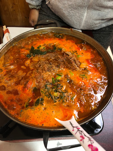 I was very impressed! My husband and I brought a table full of customers along with us, and we spent fifty dollars for seven people to eat (some shared). The food was en pointe, on time, and plentiful! We will be back to keep trying their dishes, especially after seeing the orders around us! Other patrons had steaming seafood soups and piled-high potato noodles. Our table was spread with authentic sides like steamed rice, stir-fried tofu, pickled raddish, and fresh kimchi. Even their service was wonderful. Our hostess was quick and helpful, our waitress was attentive and preemptive with things like extra plates and refills, as well as responding quickly with the check. Please give them a try if youre interested in a home-fresh, Korean meal. Im looking forward to date night so we can try them again--my only regret is not trying them out in a smaller party to better savor the meal! --For supper? Head over early to miss the rush! Its a small dining room, so you may have to wait ten minutes or so if you catch the peak time.
