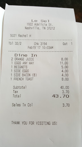 My daughter treated me to Le Sel for my birthday dinner, as she knew I had never been there. I was really impressed! Delicious food and excellent service in a lovely, comfortable atmosphere. I highly recommend!