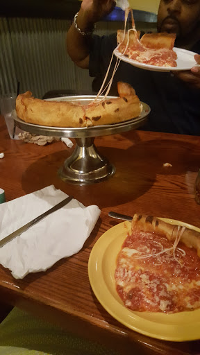 Horrible experience. Rude on the phone and poor service (which i was willing to deal with for good Chicago style pizza) We ate at the restaurant and it was a real inconvenience for the lady working behind the counter to walk to our table and ask unusual questions like "would you like another drink? can I get you anything?" The pizza came and it was a far cry from a Chicago style deep dish. The middle was luke warm and the sauce was runny. it was similar to putting marinara on cheese sticks...yuck. My wife and I ate 3/4 a piece each of a large pizza and left. I let them know the pizza was under cooked and just received a half hearted sorry...no offer to make a different one or take half off bill...then she asked the hilarious question if we wanted a box for their creation (nope!). So to recap $10 to park, bad service, bad pizza, another $28 for pizza and one drink=horrible time. The place was empty for a reason. The only chance this place has is if they fire the cook or drunk college kids give them business out of desperation. Too many other good places to eat to waste your money on this place.