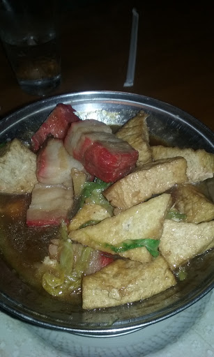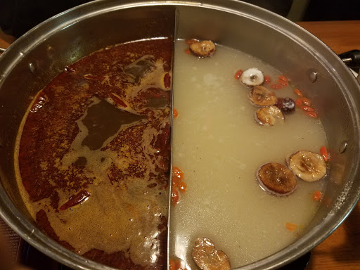 WARNING! The "sesame sauce" for the hot pot is a mix of sesame paste and PEANUT BUTTER. Thank God I chose to get sauce myself or our meal would have ended with an ambulance ride to the hospital for my husband. They told me it was sesame paste but I asked if there was peanut in it when I saw some very large chunks in the container and then they admitted it was mixed. Aside from that, this place is ridiculously ovetpriced and the service is terrible. I had to ask 4 times for napkins. Food was brought to our table and none of us had any utensils, napkins, or plates. I had to ask for utensils the next time they walked near our table. Our hotpot was never topped off and boiled down to about an inch, making it hard to finish cooking everything. The meat for the hotpot was frozen solid together and impossible to break into individual pieces. The most shocking thing on our $80 for 2 adults and 3 children under 5 years old bill (3 dim sum appetizers, only 2 meats for hotpot and veggies/noodles) was being charged $3 for hot tea. Weve had hotpot twice here and standard Chinese dishes 2 other times and I always feel like Ive been ripped off, the service always sucks, and they use so much MSG I get a migraine within 2 hours. We wont be going back. If you want AMAZING hotpot for a decent price and excellent service, go to Sichuan Hot Pot & Asian Cuisine.