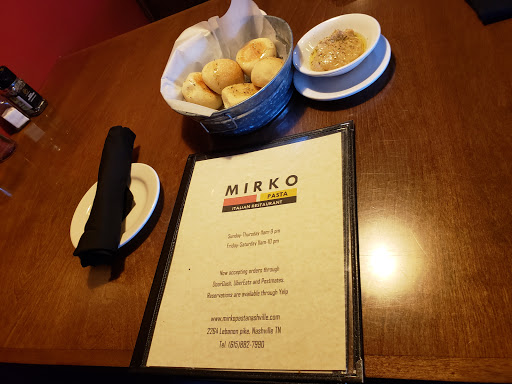 Hands down, one of the best meals Ive ever had! My husband and I have already discussed making another trip to Nashville just to enjoy dinner at Mirko again. You MUST try the Italian nachos! (forgive me for not recallling the proper name of this wonderful appetizer) Excellent service and wonderful pastas! We found you on a Google search and you well exceeded our expectations! Keep up the great work!