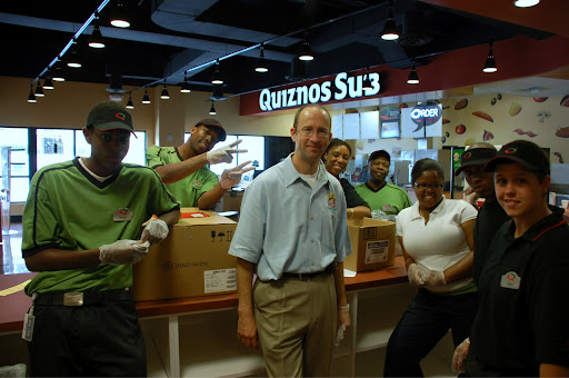 A friend and I were going to the hockey game and wanted a bite to eat before going to the game. Driving by, we saw this place and decided that it would be a good place to eat. When we walked up to the door at 6:20pm, we realized that they closed at 6pm. We were disappointed and were ready to walk away, but the owner came to the door and let us in. They served us even though all of their things had been cleaned and put away. They truly acted as if we were special. This is how customers should be treated. The store has a big dining area and they offer a variety of food items; Quiznos sandwiches, pizza, burgers, wings and more. Very clean with a large flat panel TV. It is decorated very well. Great people.